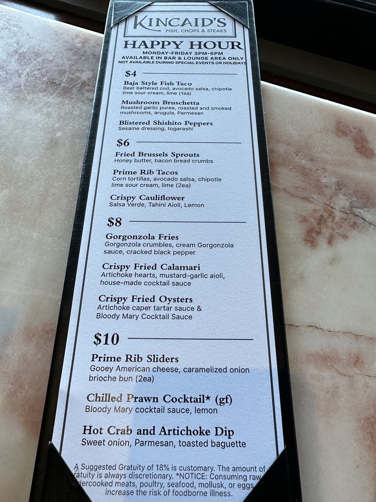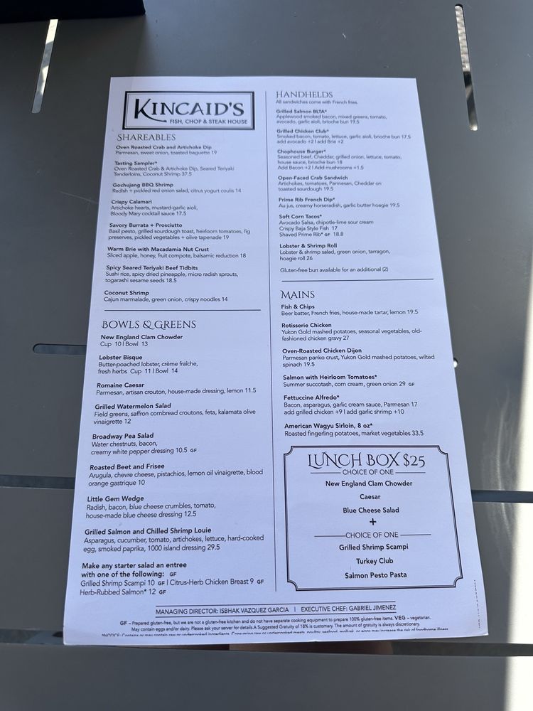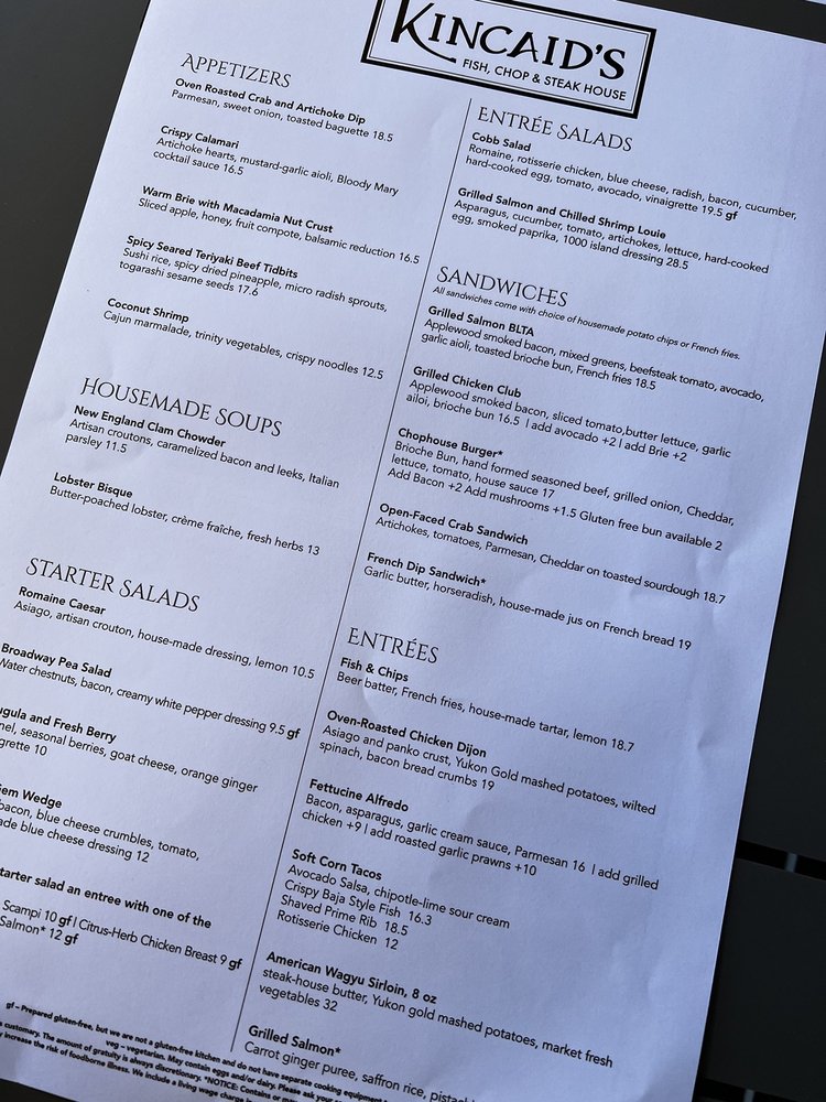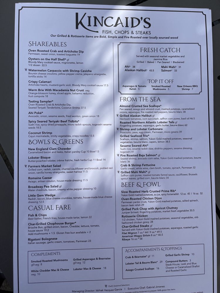 Kincaid’s Fish, Chop & Steakhouse in Redondo Beach offers a variety of menu options, including shareable appetizers like Coconut Shrimp and Warm Brie, lunch bowls & greens like Lobster Bisque and Romaine Caesar, and handhelds such as Grilled Salmon BLTA and OpenFaced Crab Sandwich. Customers rave about the ocean views, attentive service, and delicious food. Reviews mention the buttery and flavorful Oven Roasted Crab and Artichoke Dip, as well as the perfectly cooked Seared Ahi and unique mashed potatoes. The restaurant is celebrated for its scenic sunset views and fair prices, making it a popular choice for special occasions. With a mix of seafood, chop, and steak options, Kincaid’s provides a satisfying dining experience for all.